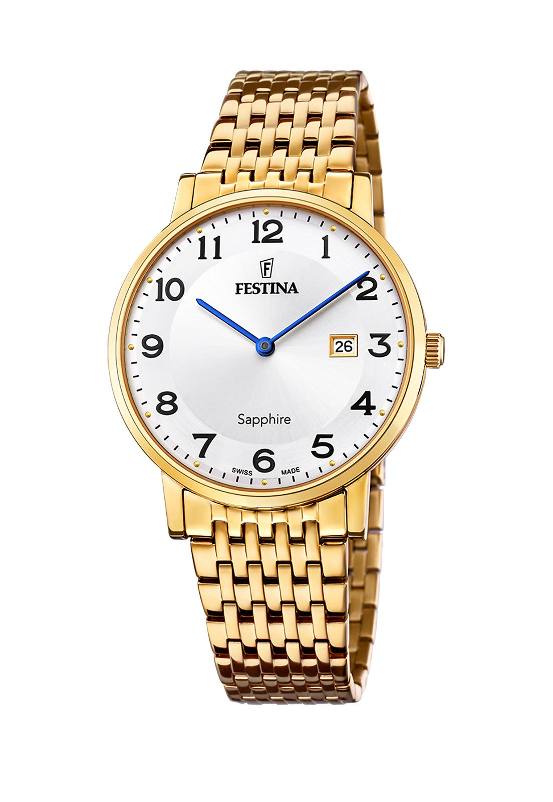 • Género: HombreMarca: Festina SwissColección: Swiss MadeFunción: QuartzPulsera: AceroColor Pulsera: DoradoDiámetro de Caja: 39.30mmAncho de Pulsera: 19.95mmResistencia al Agua: 5 ATMCalendario: SiTipo de Cristal: ZafiroGarantía: 2 Años de Garantía por Defecto de Fabricación