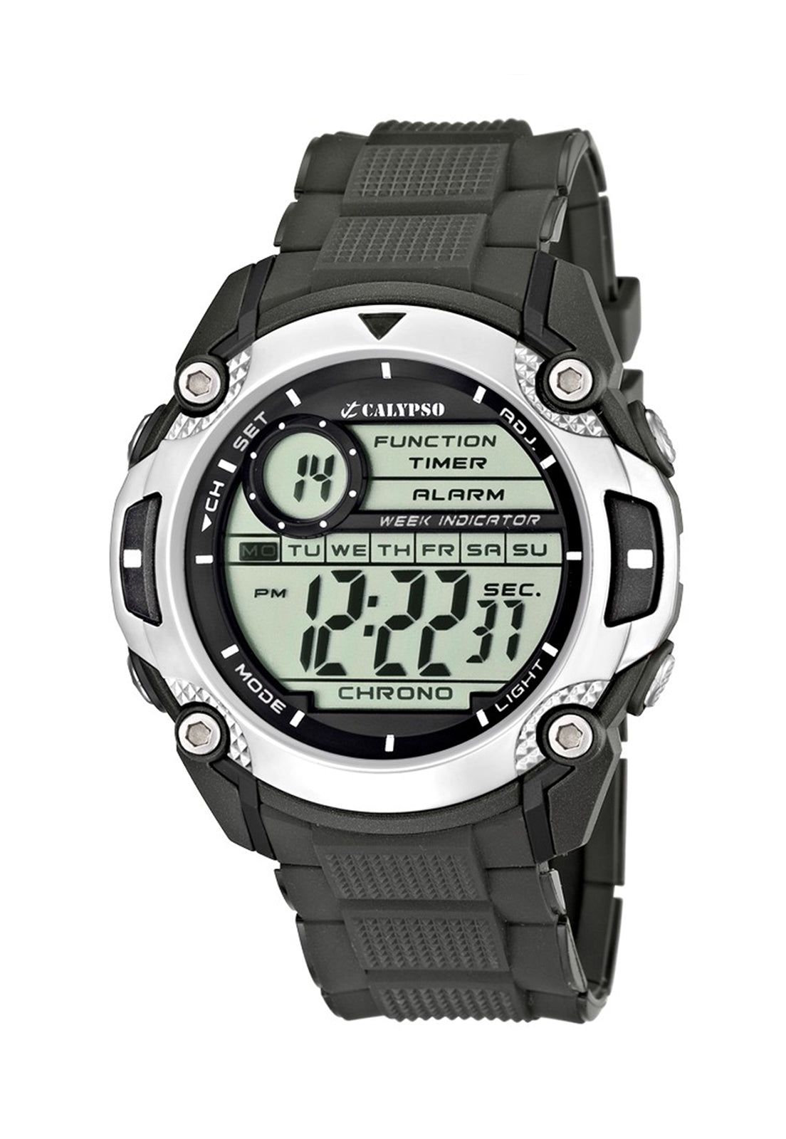 Reloj Hombre K5577/1 Calypso Digital For Man, Este reloj marca Calypso tiene una caja de plástico cuenta con una correa de Resina. Dentro de la caja se encuentra un mecanismo de alta calidad el cual esta protegido por un cristal Plexi, este reloj es resistente al agua hasta 10 ATM y tienen como objetivo cautivar con su look fresco y extrovertido, con colores intensos y atrevidos.