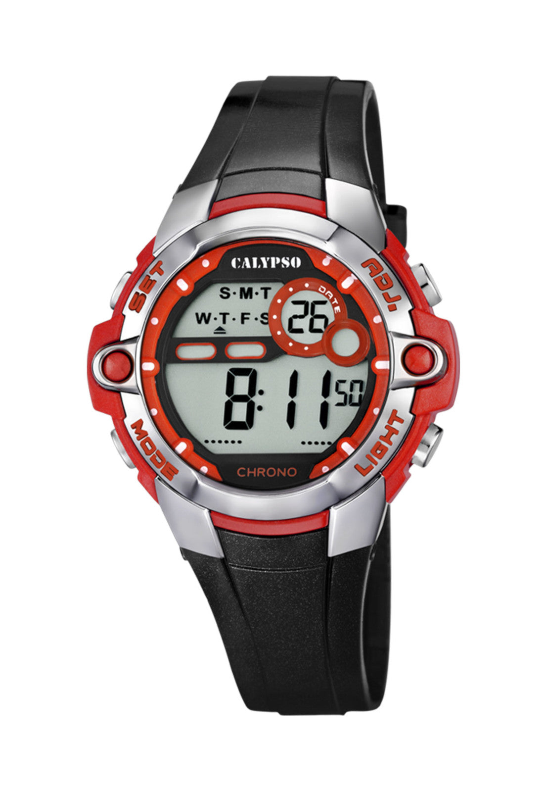 Reloj Hombre K5617/5 Calypso Digital Crush, Este reloj marca Calypso tiene una caja de plástico cuenta con una correa de Resina. Dentro de la caja se encuentra un mecanismo de alta calidad el cual esta protegido por un cristal Plexi, este reloj es resistente al agua hasta 10 ATM y tienen como objetivo cautivar con su look fresco y extrovertido, con colores intensos y atrevidos.