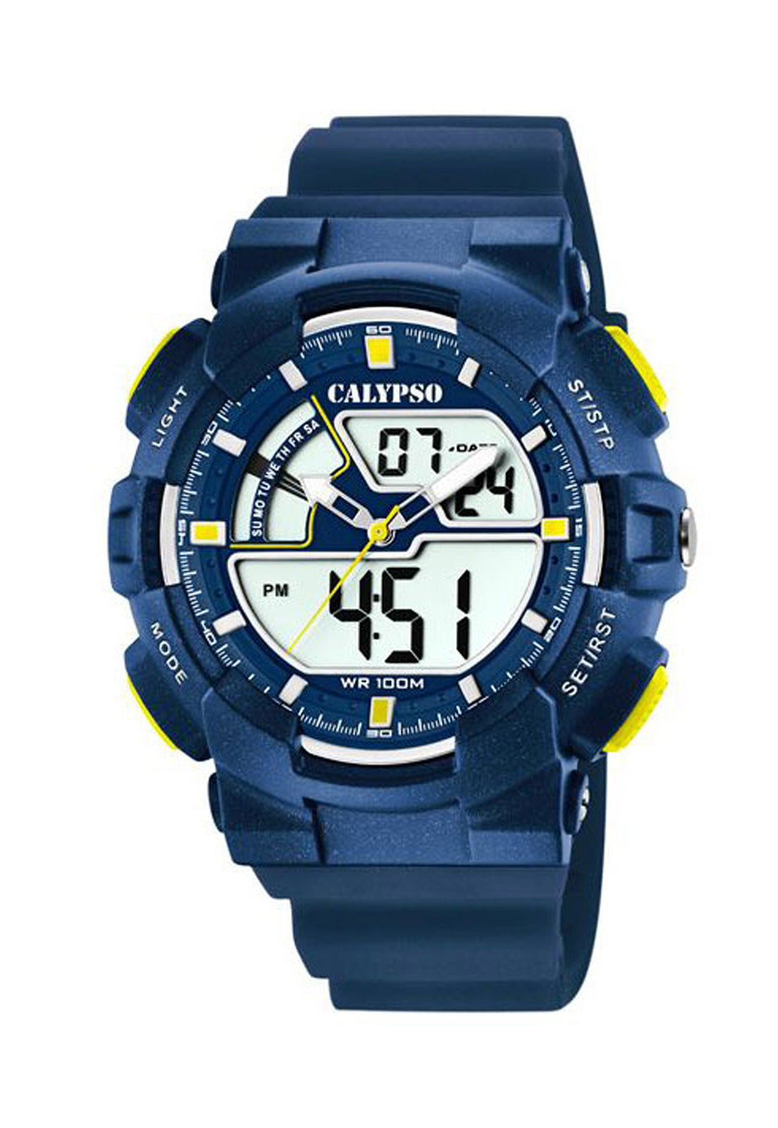 Reloj Hombre K5771/3 Calypso Digital For Man, Este reloj marca Calypso tiene una caja de plástico cuenta con una correa de Plastico. Dentro de la caja se encuentra un mecanismo de alta calidad el cual esta protegido por un cristal Plexi, este reloj es resistente al agua hasta 10 ATM y tienen como objetivo cautivar con su look fresco y extrovertido, con colores intensos y atrevidos.